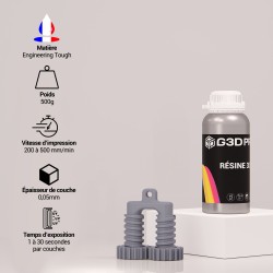 La G3D PRO® - Résine 3D Engineering tough - Gris, repoussez les limites de l'impression 3D et créez des objets durables, précis et d'une finition impeccable. Commandez dès maintenant et découvrez la différence G3D PRO® ! Parfait pour la fabrication additive.